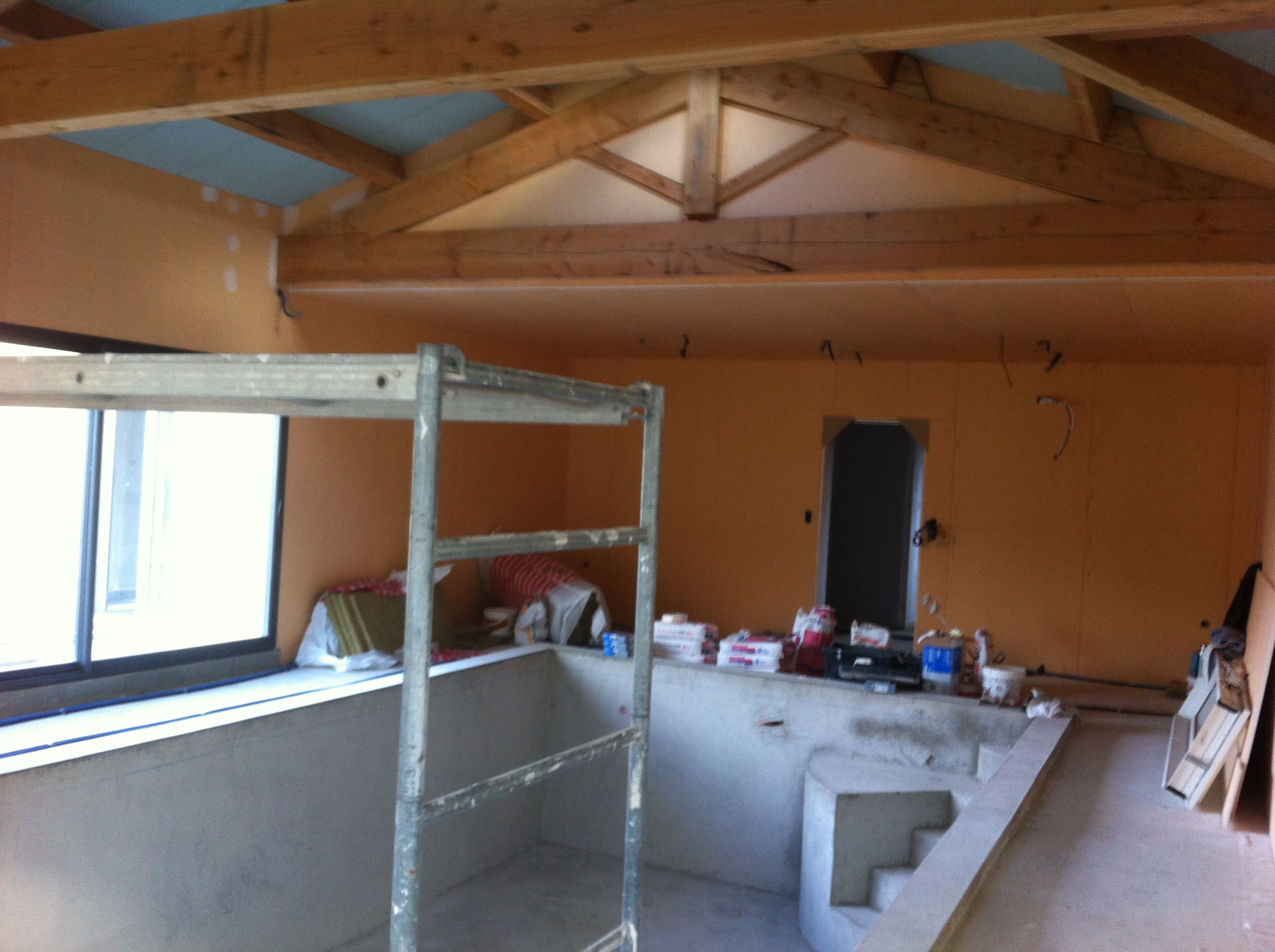 Enduit + peinture d’une piscine intérieur & son plafond avec poutres apparentes