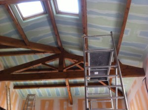 Enduit + peinture d’une piscine intérieur & son plafond avec poutres apparentes