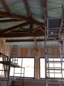 Enduit + peinture d’une piscine intérieur & son plafond avec poutres apparentes
