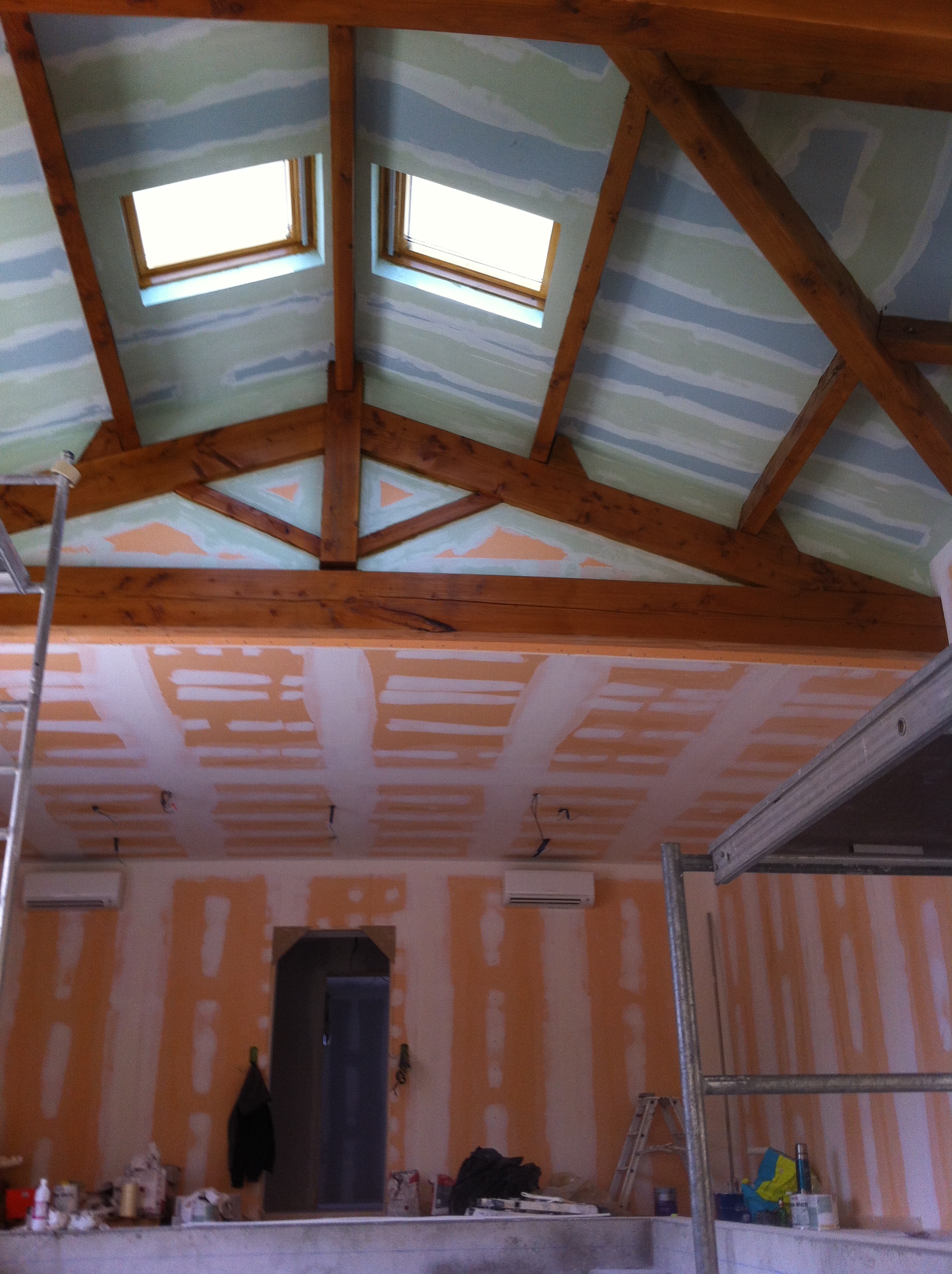 Enduit + peinture d’une piscine intérieur & son plafond avec poutres apparentes