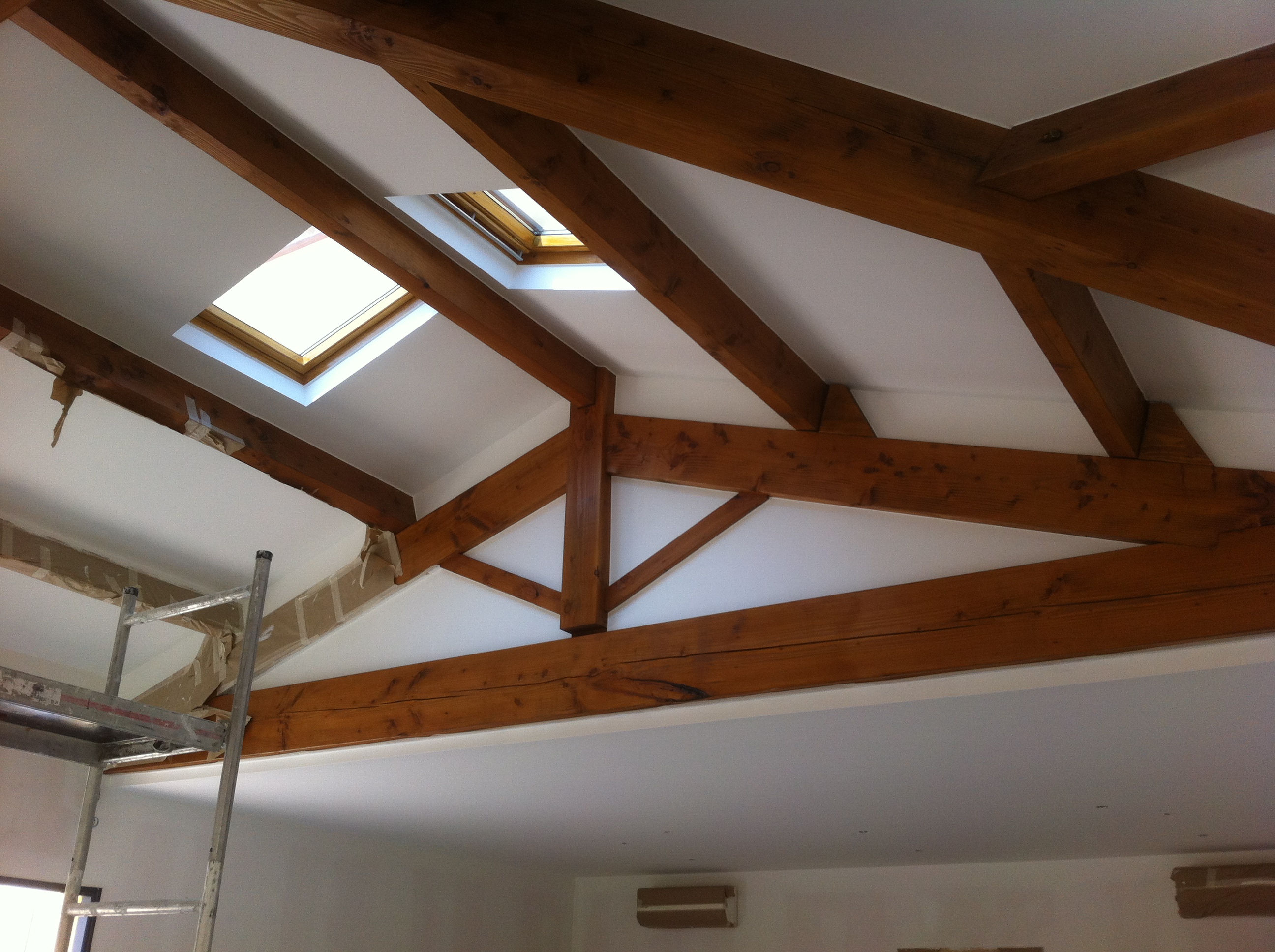 Enduit + peinture d’une piscine intérieur & son plafond avec poutres apparentes